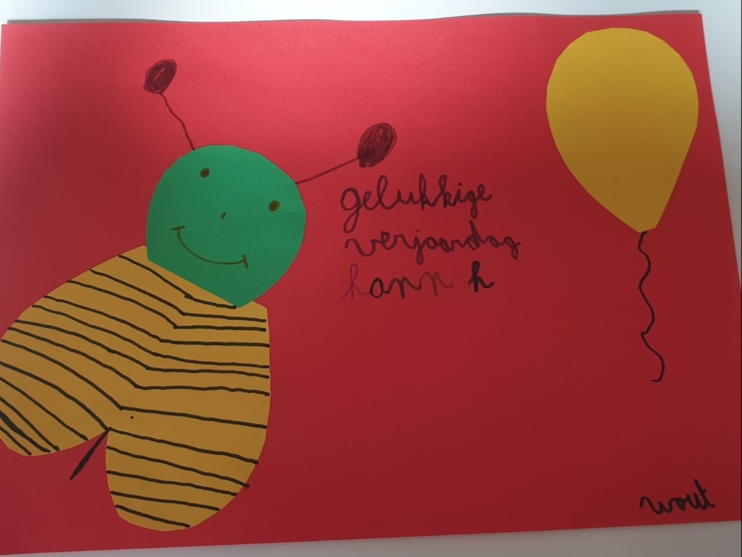 Wout dacht aan de jarigen en maakte voor hen een verjaardagskaart. Super!
